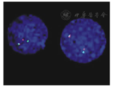 注:MLL:混合谱系白血病;MLL分离信号阳性,显示1个红色、1个绿色及1个黄色融合信号(1R1G1Y) MLL:mixed lineage leukemia;positive signal mode of MLL gene rearrangement,display 1 red,1 green and 1 yellow signals(1R1G1Y)