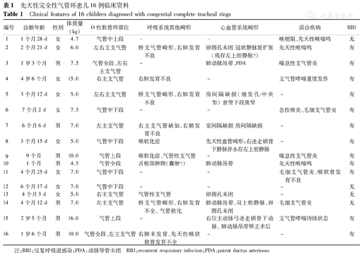 Clinical features of 16 children diagnosed with congenital complete tracheal rings