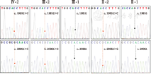 注:箭头表示先证者,星号表示经过分子遗传学检测的个体,实心表示有临床症状的个体。罗马数字代表代数,阿拉伯数字代表个体 The asterisks indicate the individuals who had undergone genetic analysis.The filled squares and circles indicate the individuals who displayed similar clinical performance.The roman numerals represent the generations,and the arabic numbers represent each generation of individuals.Arrow indicates the proband