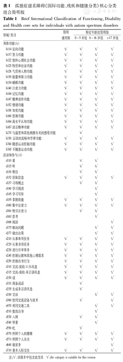 孤独症谱系障碍《国际功能、残疾和健康分类》核心分类组合综合版