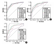 首先,将ASD幼儿与NT幼儿作为一个群体,分别将反应得分、RT、DT、反应率及总指标纳入二元Logistic回归方程,进一步经受试者工作特征(ROC)曲线分析,得曲线下面积(AUC)分别为0.844、0.850、0.856、0.865、0.889,均P<0.05;其次,将ASD幼儿与DD幼儿作为一个群体时,AUC分别为0.795(P<0.01)、0.825(P<0.01)、0.787(P<0.01)、0.604(P>0.05)、0.924(P<0.01);最后,同时将3组幼儿作为一个群体时,AUC分别为0.820、0.838、0.822、0.736、0.868,均P<0.01(表3、图1, 图2, 图3)。