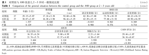 对照组与ASD组患儿2~3岁时一般情况比较(