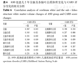 ±s表示,2组资料比较采用独立样本t检验和协方差分析(ACNOVA),采用Pearson相关分析各脑白质结构体积的变化与CARS得分变化之间的相互关系,P<0.05为差异有统计学意义。