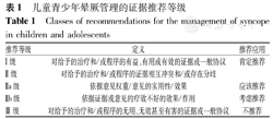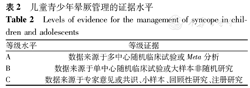 新指南采用的儿童青少年晕厥管理的证据推荐等级及其证据水平见表1、表2[5,6]。