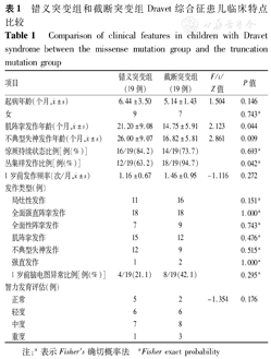 错义突变组和截断突变组Dravet综合征患儿临床特点比较