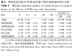 Multiple regression analysis of various factors of caregiver factors on the efficacy of PCBI very early intervention