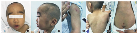 本病目前尚无特效治疗方法,均为对症治疗,精神运动发育迟滞、肌张力减低患者需进行语言或运动康复训练。文献报道生长激素缺乏患者占50%(6/12例),但无论生长激素水平正常或降低,予身材矮小患者生长激素治疗均取得较好疗效,目前尚未发现应用生长激素治疗后合并肿瘤发生患者,需定期监测血常规、纵隔彩超并进行大样本长期随访研究评估其风险[6]。喂养困难或消瘦小婴幼儿建议高热卡奶粉喂养。脊椎CT检查出现椎骨畸形导致脊髓受压者,需进一步完善脊髓MRI,尽早手术解除脊髓压迫。眼睑下垂、小眼裂、斜视、泪道异常可行眼科手术纠正。屈光不正可完善屈光度检查佩戴眼镜纠正。心脏畸形如动脉导管未闭、卵圆孔未闭多为轻度,若未出现心功能障碍,可随访观察,多数患者随年龄增长可自愈。伴癫痫发作患者予抗癫痫药物治疗[12]。