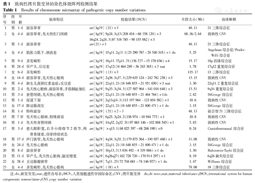 综上所述,CMA是一种有价值的临床诊断工具,与常规核型分析相比具有更高的检出率,可有效诊断新生儿期染色体不平衡引起的出生缺陷,从而协助临床医师进行诊断,早期新生儿干预和遗传咨询。
