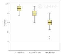 GINA标准控制组TRACK得分为[90(85,95)分],部分控制组TRACK得分为[80(70,85)分],未控制组TRACK得分为[60(55,65)分]。3组患儿TRACK得分比较,差异有统计学意义(H=101.740,P<0.001)。3组间进行两两比较,控制组与部分控制组(U=500.000,P<0.001)、控制组与未控制组(U=24.500,P<0.001)、部分控制组与未控制组(U=251.000,P<0.001)的TRACK得分间差异均有统计学意义。结果见图1。