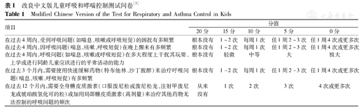 改良中文版儿童呼吸和哮喘控制测试问卷[3]