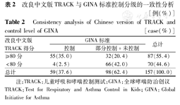 改良中文版TRACK与GINA标准控制分级的一致性分析[例(%)]