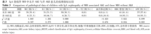 注:MH:肉眼血尿;AKI:急性肾损伤;MEST:IgAN牛津分类;新月体比例:细胞/纤维细胞新月体;RBC:红细胞;ATI:急性肾小管损伤