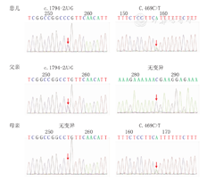 抽取患儿及其父母外周血2 mL,行包含LPIN2的基因检测,并采用Sanger法对突变位点进行测序验证。