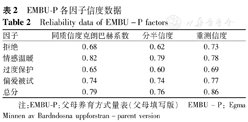 注:EMBU-P:父母养育方式量表(父母填写版) EMBU-P: Egma Minnen av Bardndosna uppforstran-parent version