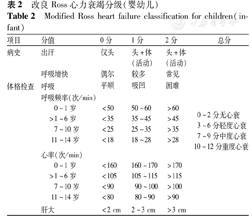 儿童心衰的临床表现呈现了多样性和非特异性,其症状因患者年龄和病程长短有所不同,主要体现在呼吸系统、消化系统和心血管系统(表1),尤其是婴幼儿多以呼吸系统的表现起病,可通过改良Ross心衰评分法(表2)或NYHA心功能分级法对心衰进行分级。
