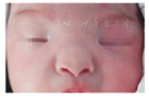 患儿,女,3 d,因"发现心律失常1 d"入院;患儿系第2胎,第1产,孕38周,剖宫产出生,出生体质量3 400 g,Apgar评分及羊水情况不详,胎儿期脐带绕颈1周。因其母亲妊娠期间发现胎儿心律失常,出生第3天行常规心电图(ECG)示:室性心动过速,不完全性干扰性房室脱节,可见心室夺获。患儿出生前3 d精神、反应、吃奶尚可,大小便正常。其母亲妊娠前检测人类白细胞抗原(HLA)-Ⅰ、HLA-Ⅱ抗体均为阴性,抗狼疮抗凝物可疑阳性;妊娠早期使用过环孢素、肝素、阿司匹林、泼尼松等药物;妊娠期间血压偏高,口服药物控制可。妊娠36周时胎儿ECG示:(1)窦性心动过速,心率176~181次/min,伴室内传导阻滞,或房性心动过速伴室内差异性传导;(2)室上性期前收缩或室性期前收缩。患儿母亲无梅毒等病史。入院时查体:体温36.7 ℃,脉率171次/min,呼吸45次/min,血压77/47 mmHg(1 mmHg=0.133 kPa),体质量3 300 g,神志清楚,全身反应可,哭声有力,皮肤黄染,前囟平软,1.5 cm×1.5 cm,宽眼距、内眦赘皮、高鼻梁(图1),呼吸平稳,心率171次/min,心律齐,心音正常,未闻及明显杂音,肺部听诊未闻及干湿性啰音,腹软,腹部张力正常,肝肋下1~2 cm,右侧通贯掌,肌力、肌张力正常。