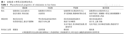 4种钴胺素结构有所差异,其药物代谢动力学也有区别(表1)。