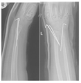 术后定期随访患儿骨折愈合时间、骨折再移位情况及腕关节功能,随访患侧尺桡骨正侧位X线片。临床骨折愈合标准:(1)局部标准:局部无反常活动,无压痛及纵向叩击痛;(2)影像学标准:X线片显示骨折线模糊,有连续性骨痂通过骨折线。按Berton愈后评价标准[5]评定腕关节功能。