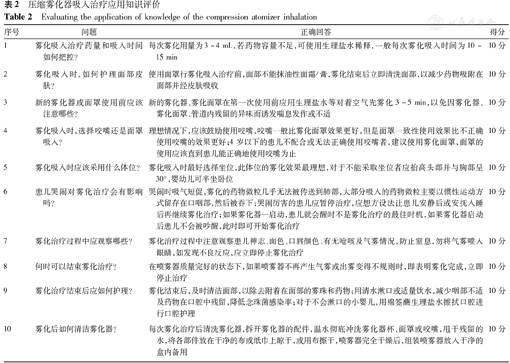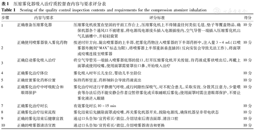 压缩雾化器吸入治疗质控督查内容与要求评分表