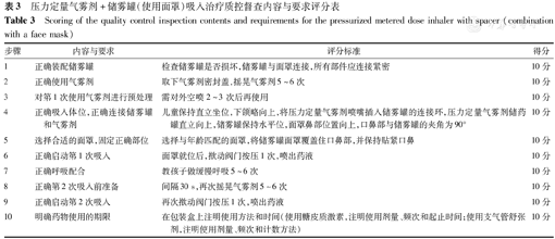 压力定量气雾剂+储雾罐(使用面罩)吸入治疗质控督查内容与要求评分表