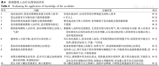 | 1 | 每次就诊时,您是否需要检查患儿的吸入技术? | 在每次就诊时,应该评估每位哮喘患儿的吸入技术 | 10分 |