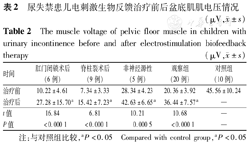 比较治疗前后盆底肌肌电压。比较患儿不自主排尿频率及根据控尿功能和每日漏尿发生的次数。(1)治愈:症状完全消失;(2)有效;尿滴沥症状明显改善,排尿量≥50%;(3)无效:尿滴沥症状无改善或排尿量<50%。