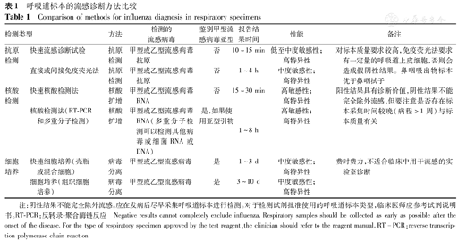 呼吸道标本的流感诊断方法比较
