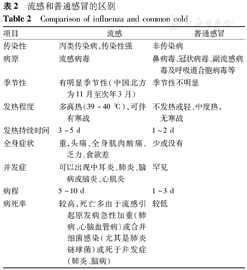 通常流感的全身症状比普通感冒重;追踪流行病学史有助于鉴别;普通感冒的流感病原学检测阴性,或可找到相应的感染病原证据。流感和普通感冒的区别见表2。