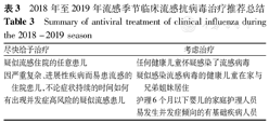 2018年至2019年流感季节临床流感抗病毒治疗推荐总结见表3[44]。