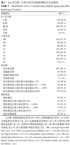 Lee氏分级、牛津分型及其他病理特点分布情况