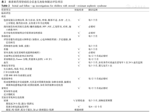 激素耐药型肾病综合征患儿初始和随访评估项目