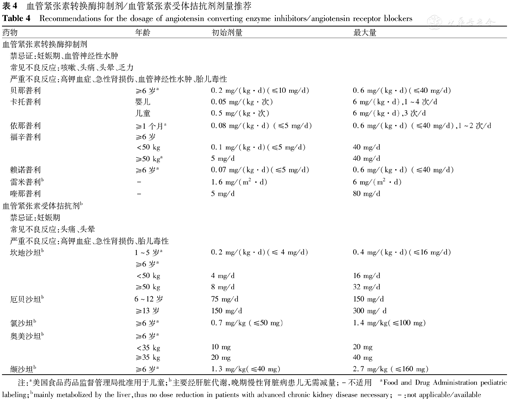 | 坎地沙坦b | 1~5岁a | 0.2 mg/(kg·d)(≤ 4 mg/d) | 0.4 mg/(kg·d)(≤16 mg/d) | |