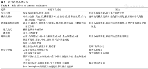 建议监测并发症和药物不良反应(表5)(B,中度推荐)。