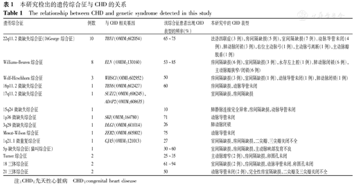 本研究检出的遗传综合征与CHD的关系