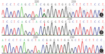 患儿及父母血标本送至北京迈基诺医学检验所行基因测序分析发现,FGFR3基因第9号外显子上c.1138G>A核苷酸变异,致第380号氨基酸甘氨酸变异为精氨酸,为错义变异,其致病性已有文献报道(参考数据库:HGMD Pro及PubMed)。该变异不属于多态性变化,在人群中发生的频率极低(参考数据库:1000Genomes、dbSNP)。家系验证发现患儿父亲该位点为野生型,母亲该位点为杂合变异(图1)。