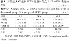 对照组、PAN组和FK506组各时间点IL-27 mRNA表达的变化(