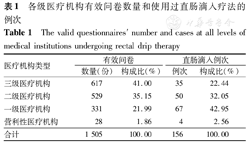 The valid questionnaires′ number and cases at all levels of medical institutions undergoing rectal drip therapy