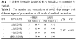 不同类型药物制剂各级医疗机构直肠滴入疗法的例次与构成比