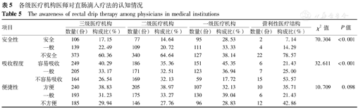 各级医疗机构医师对直肠滴入疗法的认知情况