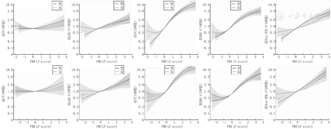 通过样条曲线拟合发现FMI、FMP(Z-score转换)与各血脂异常呈正相关,且与TG、HDL-C的关联更为密切(图1)。