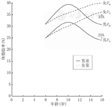 注:灰色显示点对应值25%(男)和35%(女)为世界卫生组织推荐的成人体脂肪过多诊断标准 The gray points [25%(male) and 35%(female)]show the World Health Organization recommended definition of excess body fat in adult