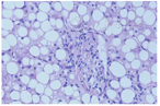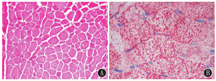右股外侧肌肌肉活检提示轻度肌损害改变,考虑脂质沉积性肌病(图1)。肝活检提示肝细胞脂肪变性(图2)。