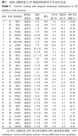 肌张力障碍患儿32例基因检测及手术治疗信息