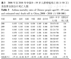 Asthma mortality rates of Chinese people aged 0-19 years and estimated total death toll in China,2008-2018 (1/100 000)