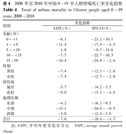 Trend of asthma mortality in Chinese people aged 0-19 years,2008-2018