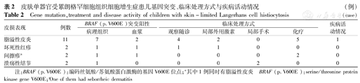 皮肤单器官受累朗格罕细胞组织细胞增生症患儿基因突变、临床处理方式与疾病活动情况 (例)