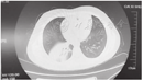 2组患儿病程中均有咳嗽、咳痰等呼吸道症状,均以"肺炎"为入院诊断,塑型组在病程中有发热、行支气管镜前病程≥10 d、镜前热程≥10 d均高于非塑型组(表1),且病程中有发热、镜前热程≥10 d的差异有统计学意义(P<0.05)。塑型组患儿存在气促、呼吸困难,诊断呼吸衰竭者,考虑与树枝样痰栓堵塞支气管、造成肺不张/实变影响通气有关(图1、图2)。