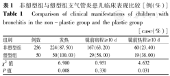 Comparison of clinical manifestations of children with bronchitis in the non-plastic group and the plastic group [case(%)]