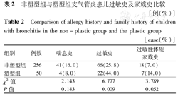 Comparison of allergy history and family history of children with bronchitis in the non-plastic group and the plastic group [case(%)]