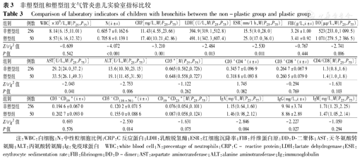 Comparison of laboratory indicators of children with bronchitis between the non-plastic group and plastic group